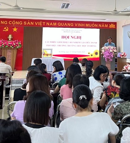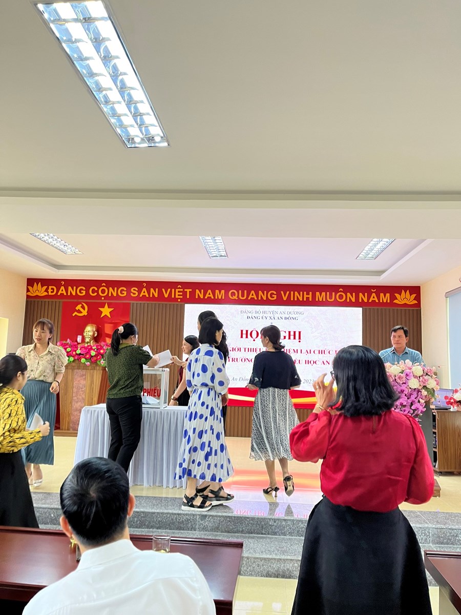 Ngày 27/09/2023, tại Hội trường Tiểu học An Đồng đã diễn ra Hội nghị lấy phiếu giới thiệu bổ nhiệm lại chức danh Phó Hiệu trưởng đối với đồng chí Bá Thị Hoàng Yến.
