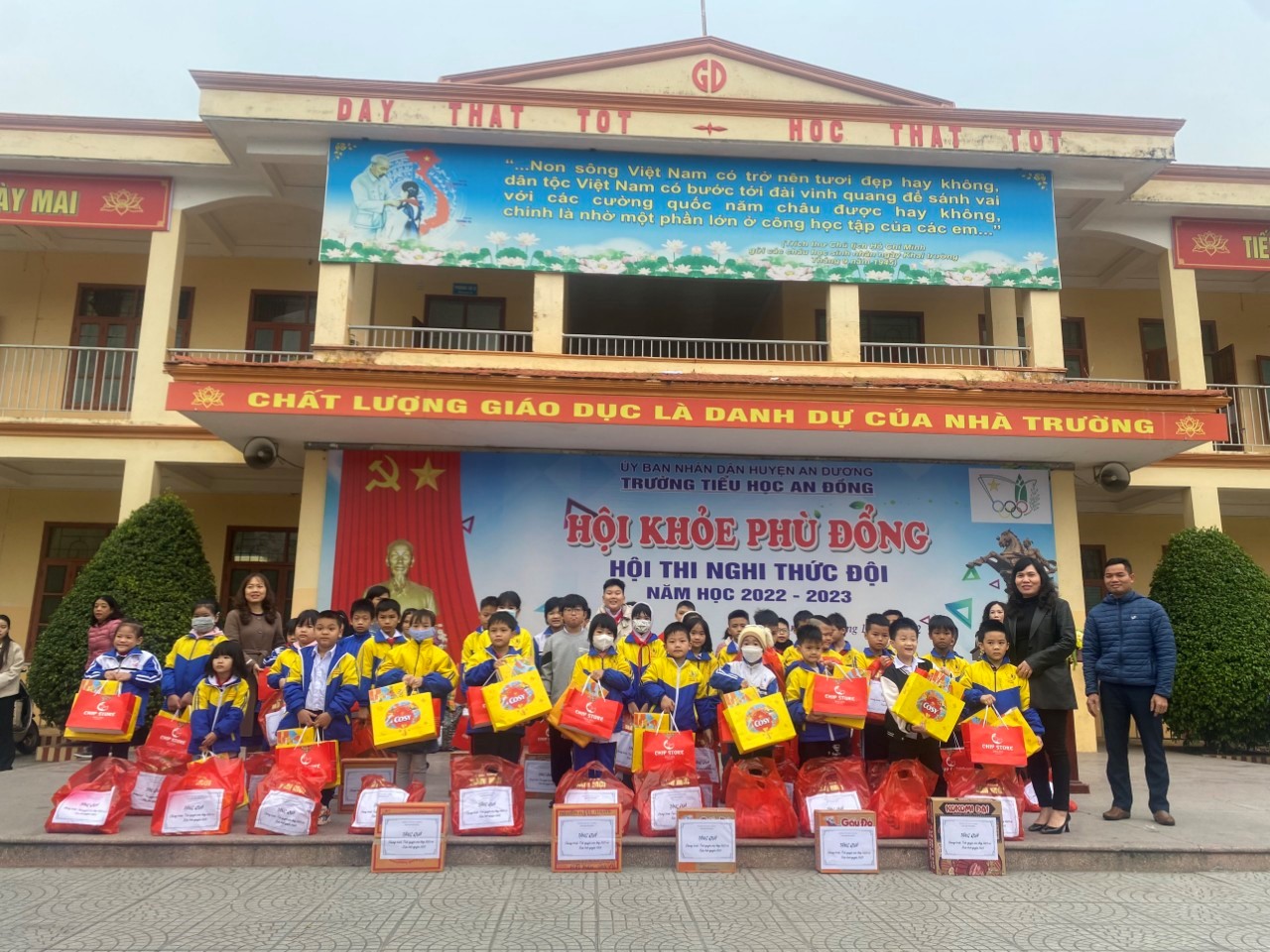 Sáng ngày 09/1/2023 Liên đội trường TH An Đồng tổ chức Lễ chào cờ và trao quà cho các em HS có hoàn cảnh khó khăn trong chương trình Tình nguyện Mùa Đông năm 2022 và Xuân tình nguyện 2023.